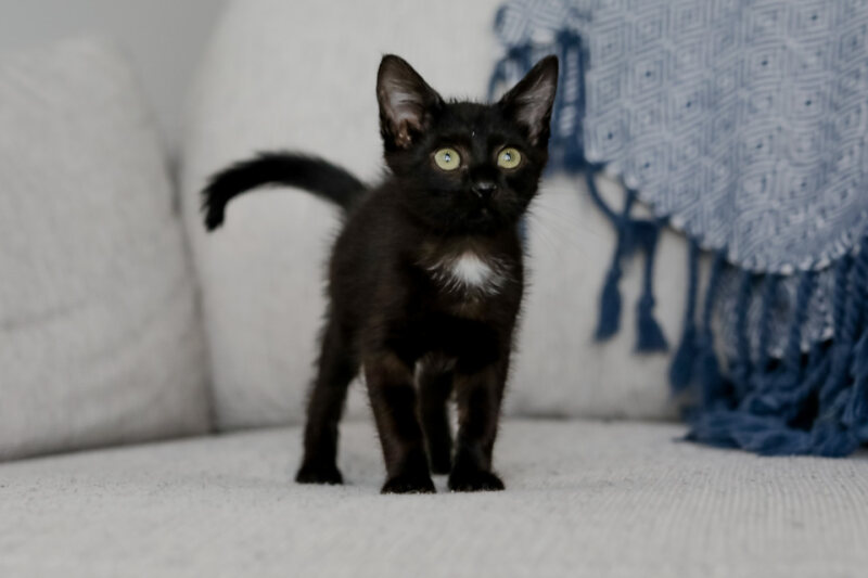 Meet Espresso; just like his namesake, Espresso is small, strong, and guaranteed to wake you up (in the best possible way). He’s the kind of kitten who doesn’t just play… he commits to play. Shoelaces? Attacked. Jingle balls? Booted down the hallway like he’s training for the kitten Olympics. Human toes? Consider them fair game. Other cats’ tails? Absolutely irresistible.