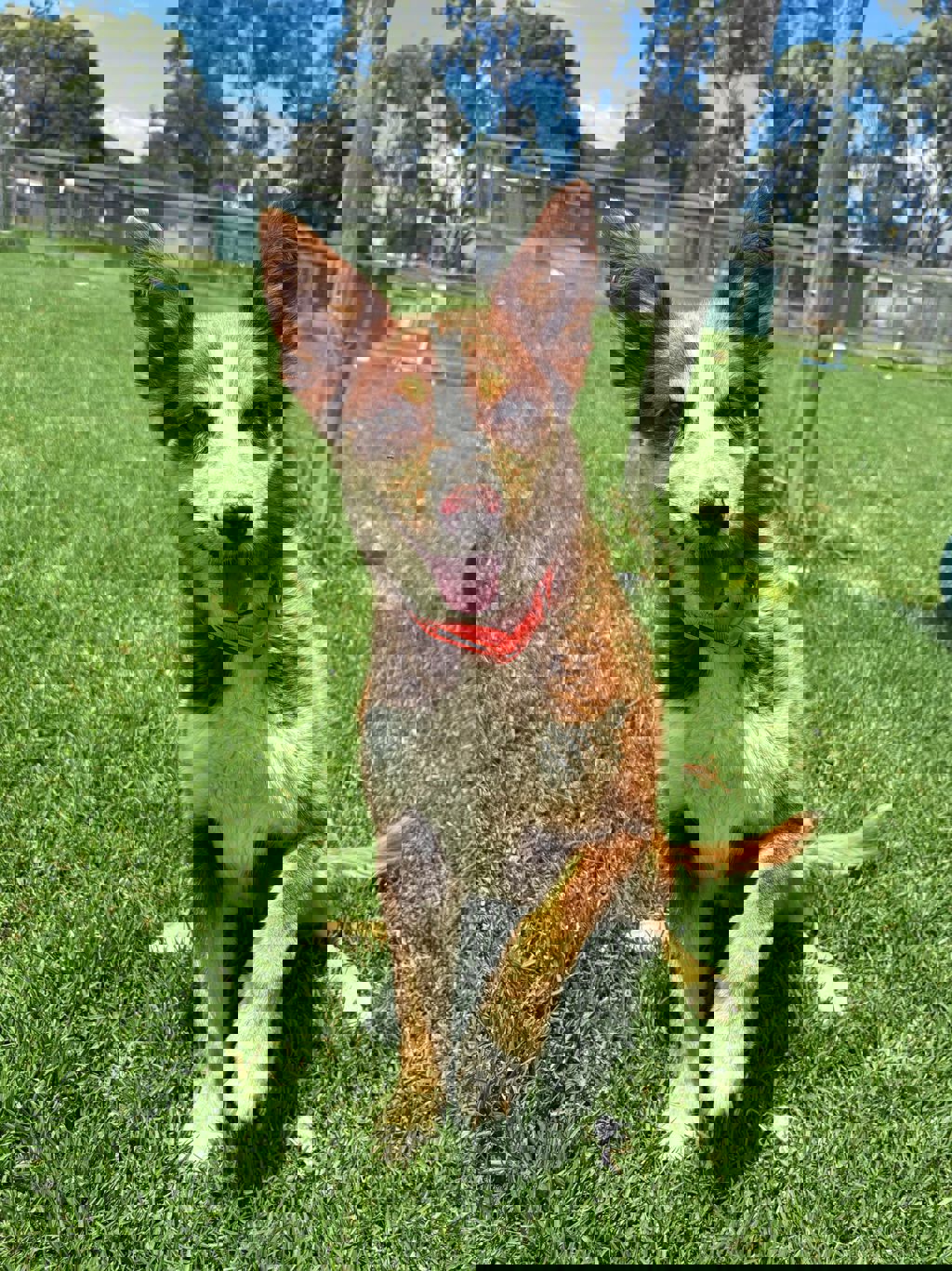 Sky is a beautiful Koolie mix (possibly with a splash of Husky, judging by her thick, gorgeous coat) who perfectly balances gentle manners with an active streak. She's the kind of girl who's happy to relax by your side after she's had her daily dose of exercise and brain games.