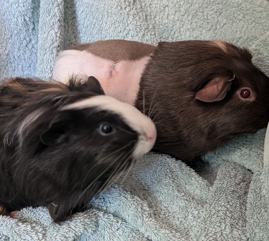 A loving mother-daughter guinea pig duo looking for a forever home together!
