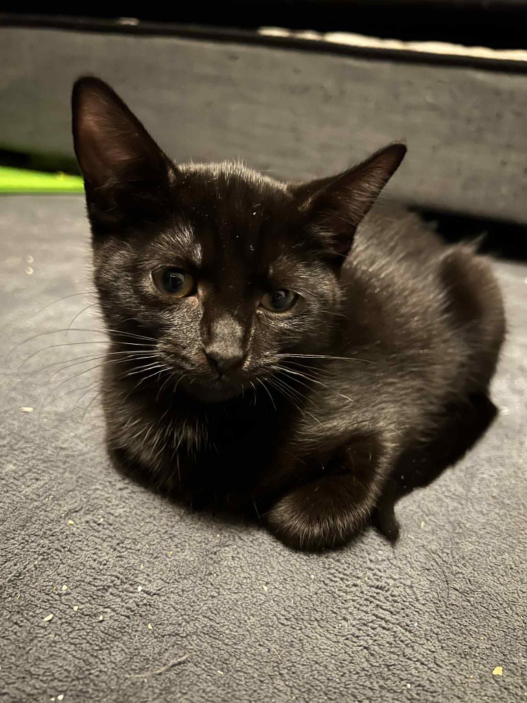 Millie is an observant, curious kitten who thrives on routine. While she is initially shy with new people, she warms up quickly; it took only four days for her to seek out pats and allow herself to be picked up. She is not a lap cat yet and prefers to wiggle free if held for too long, but she is consistently interested in human activity.