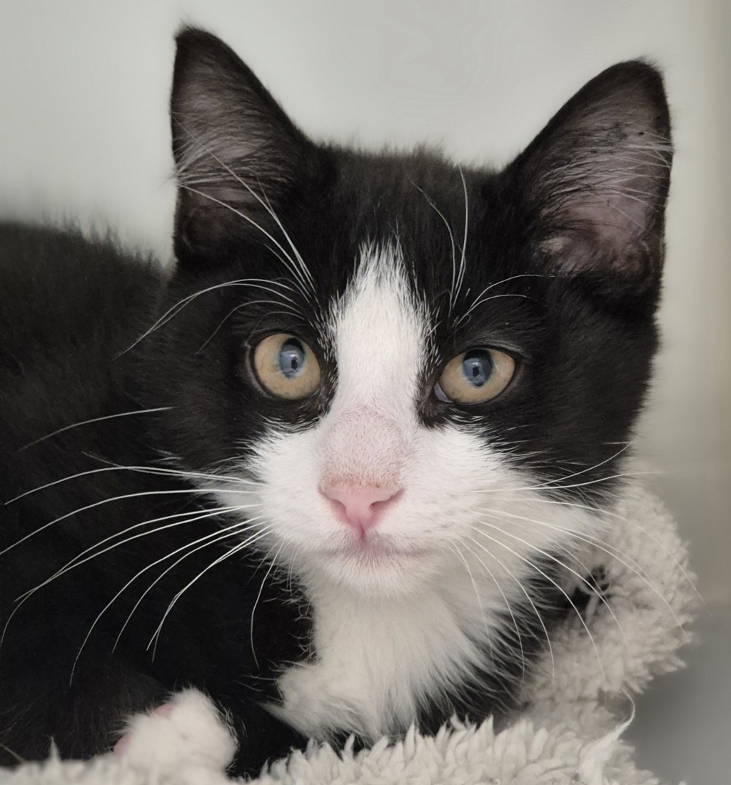 Phil is a little black-and-white boy who is still finding his paws in this big world. Right now, everything feels a bit overwhelming for him, and he can be quite nervous - including giving a hiss when approached. It's simply his way of saying he's unsure and needs time to feel safe.