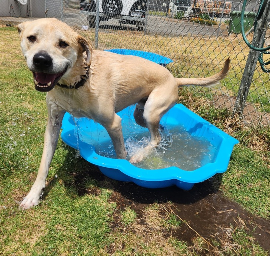 Duke is our goofy, but smart, stray boy who found himself back to his old home looking for his owner. Unfortunately that owner failed to care, and Duke is now a GAWS dog. Duke deserves a loving home with secure fencing and a competent owner to work on training and general lead skills. He has made good progress meeting dogs but is a little rude and rough. He would do best as single dog so that his new owner can concentrate on skills and training, however a assertive female might just help Duke. He has no history with children, and this large excitable boy is a knocking hazard for little ones. He has not been cat tested. Duke is affectionate boy, good to handle, and a bit of a water baby.