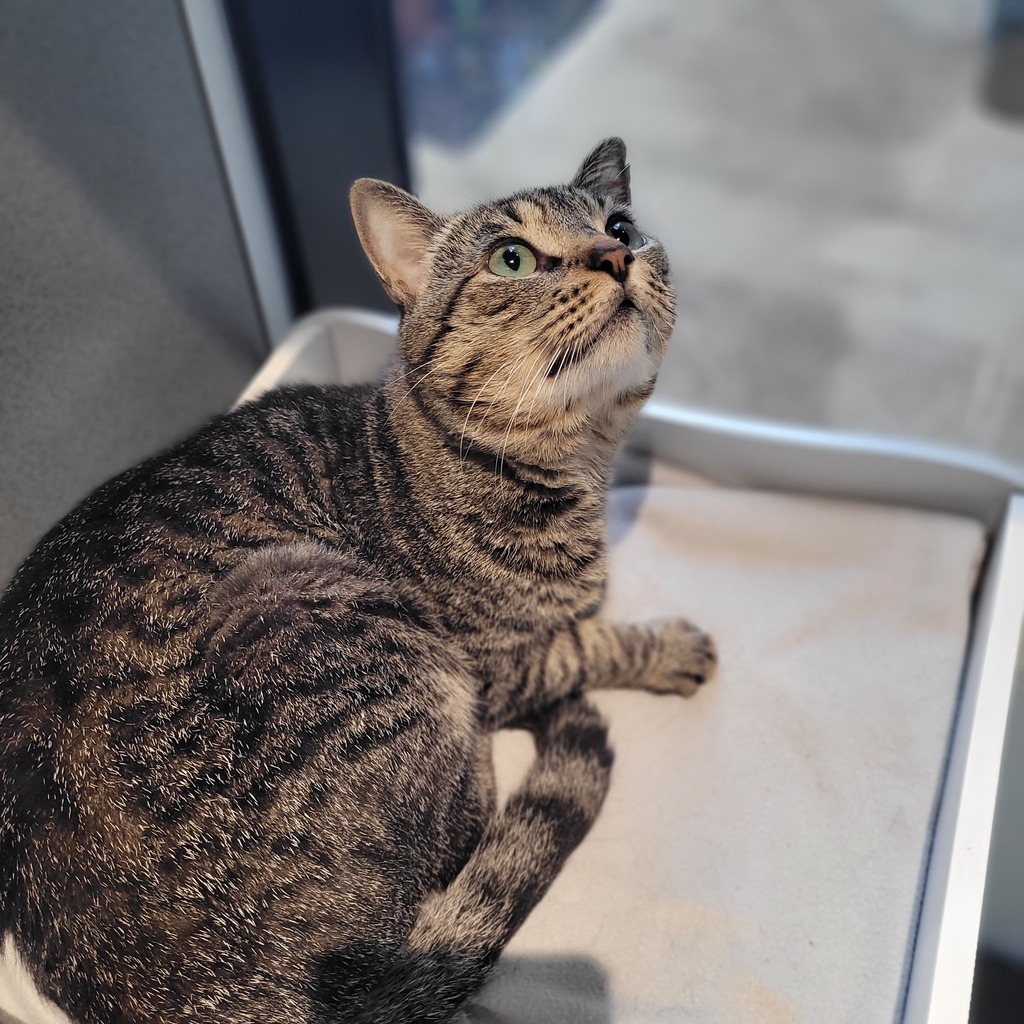 I'm ready for a home where I can be part of the routine - lounging in sunny spots, hanging out with my humans, and offering purrs when the moment feels right. If you're looking for a calm, friendly companion who appreciates a bit of affection and a peaceful environment, I think we could be a great match.
