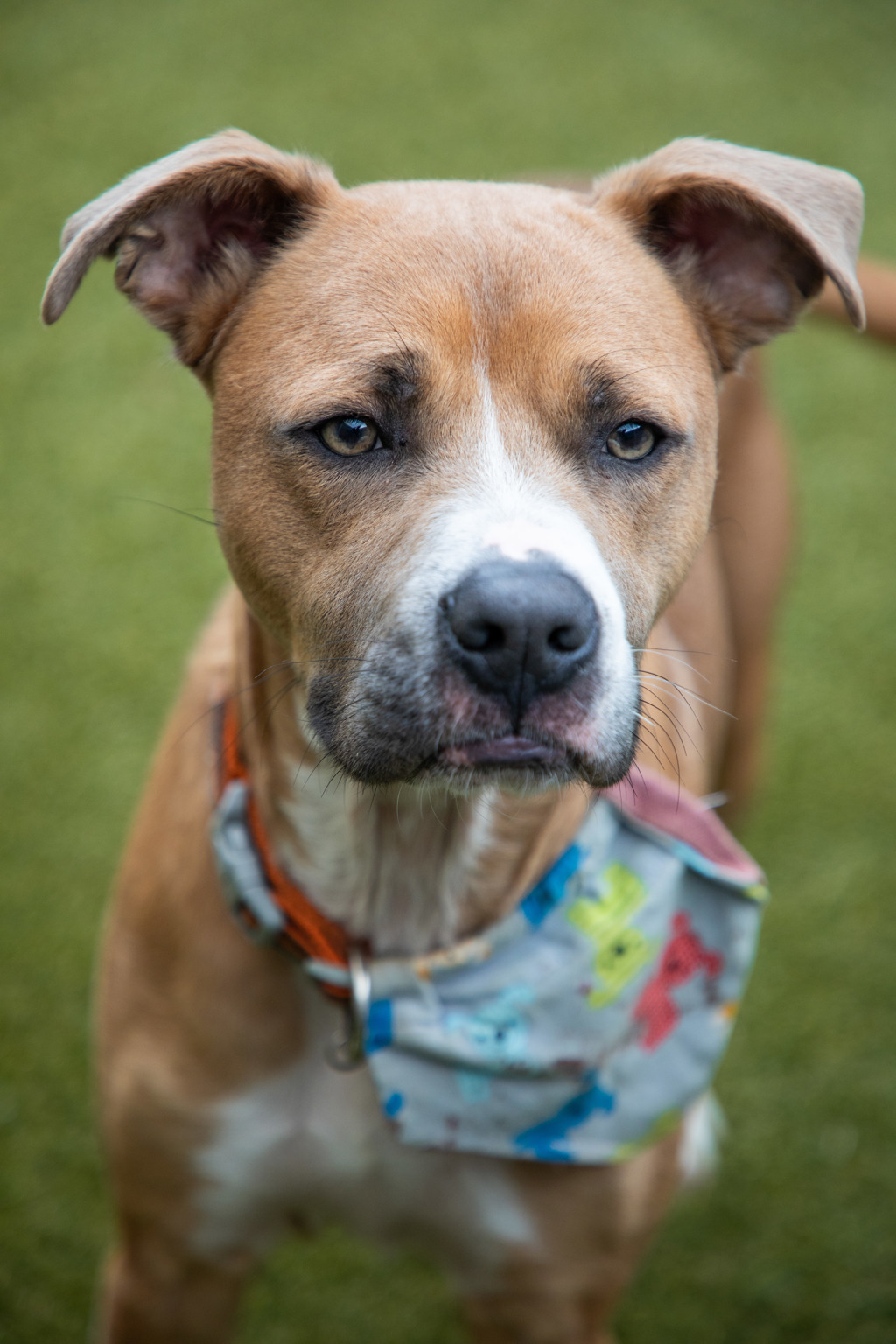 Reinfield would love a home that continues his training and enrichment to help him keep learning and settling into his best self. Puzzle feeders, sniffy walks, food games, and short, fun training sessions are all great ways to keep his clever mind busy.