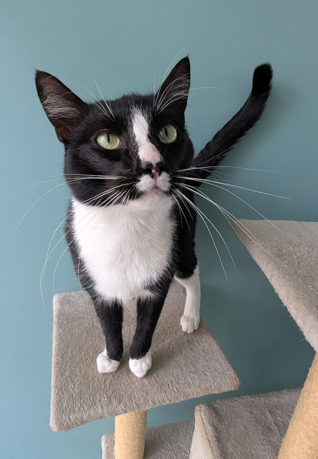 Ninja is a handsome black‑and‑white sweetheart who just needs a little time to show his true colours. He may start off a bit nervous, but once he feels safe, he blossoms into a playful bundle of energy, full of zoomies, affection, and charm! Ninja would do wonderfully with first‑time adopters who can give him a gentle introduction to his new home, including a cozy private room for a few days and a comfy hideaway like a cat tree, igloo, or cardboard box when he's feeling overwhelmed. He's also great with respectful, older children who understand how to give him space when he needs it. If you're looking for a loving boy who just needs a little patience to shine, Ninja is ready to steal your heart! :)