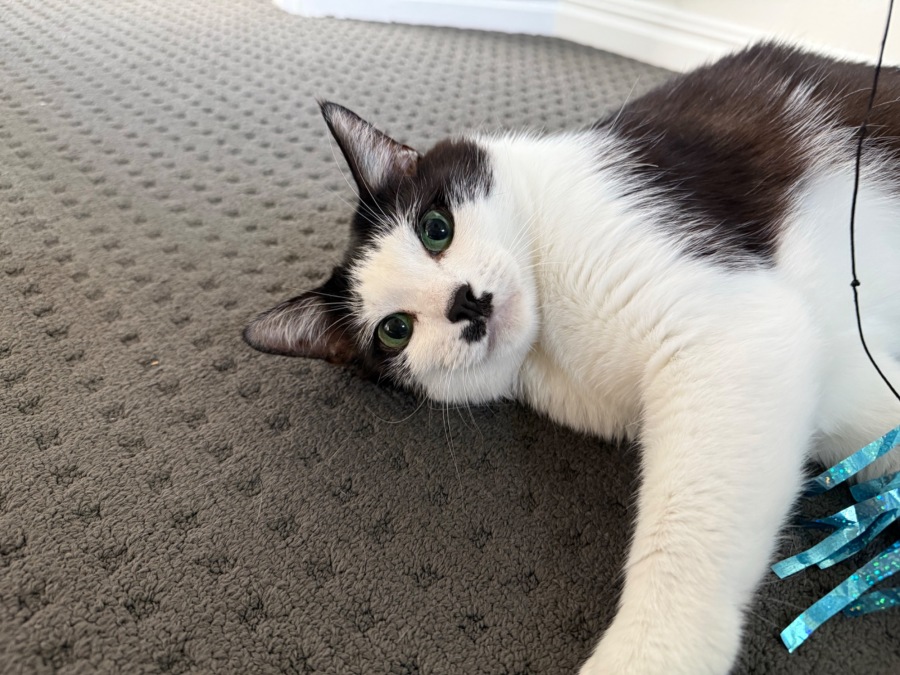 Astrid has a playful side too. With a wand toy or a bit of encouragement, she’ll happily bat, pounce, and show off her skills. She’s gentle and rarely bites, making her a lovely companion for a calm household.