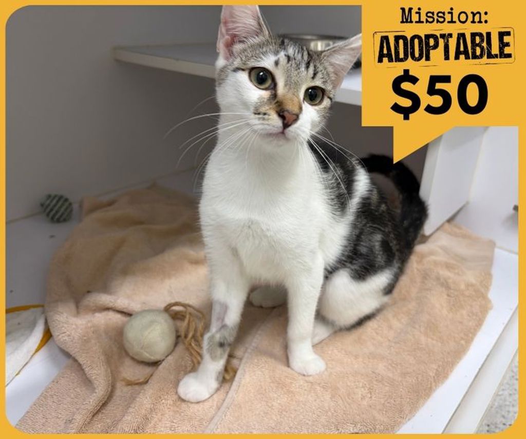 At four months old, I am the perfect mix of bold and baby. I have bursts of fearless energy where I wrestle, chase, and perform impressive acrobatics. Then, just as suddenly, I'll curl up in a cozy spot and purr myself to sleep like the tiny sweetheart I am. I love playtime, I love attention, and I love being part of the action. If you're moving, I'm probably following.