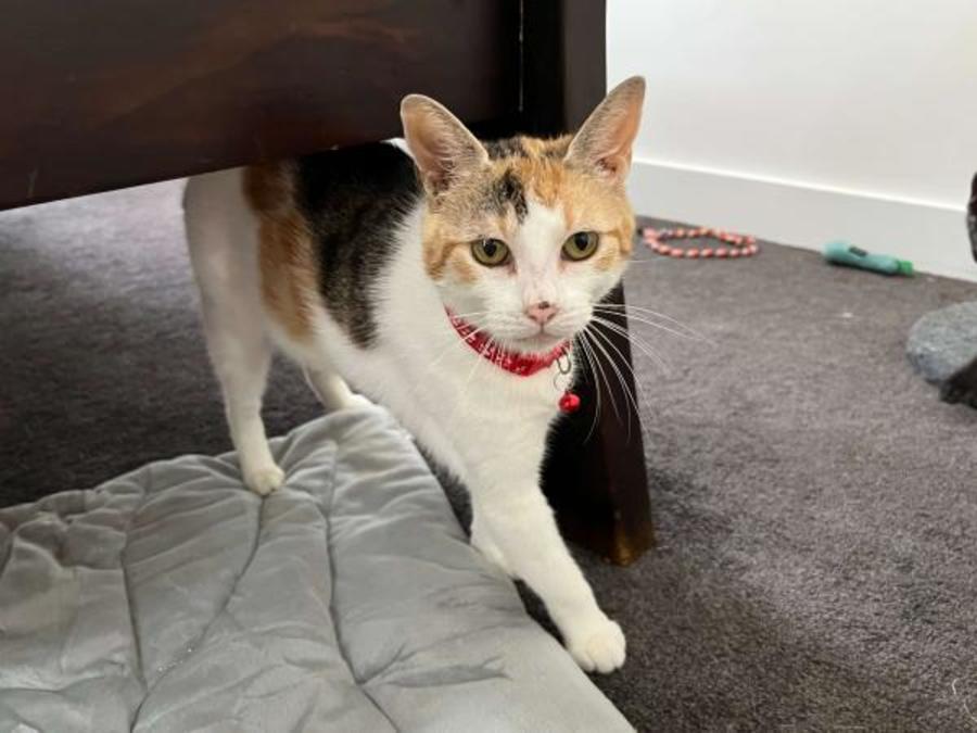 Once comfortable, Aurora becomes playful and enjoys climbing cat trees and playing with balls and feather toys. She has a calm nature and a very light tread around the home.