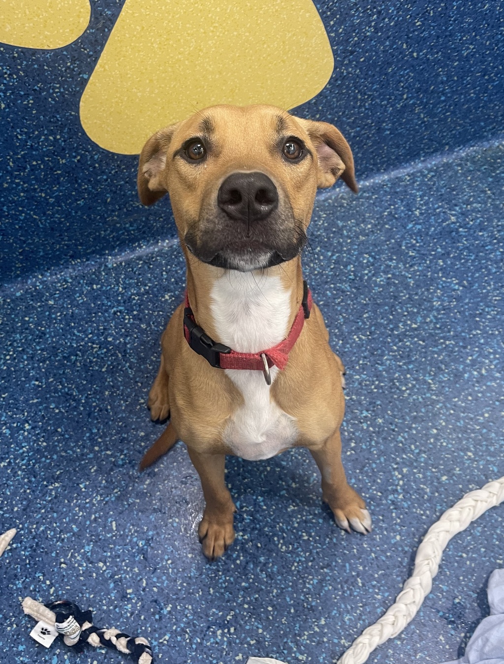 He is a smart boy who enjoys enrichment and has shown a strong interest in wobblers and snuffle mats. Feeding his daily meals through enrichment activities is recommended to keep his mind active and engaged. Franklin can be worried by close handling and restraint, occasionally resulting in nervous wees, so he will need continued work on touch consent and gentle, positive reinforcement training. He already knows how to sit and shake and would love a family willing to continue building on his training.