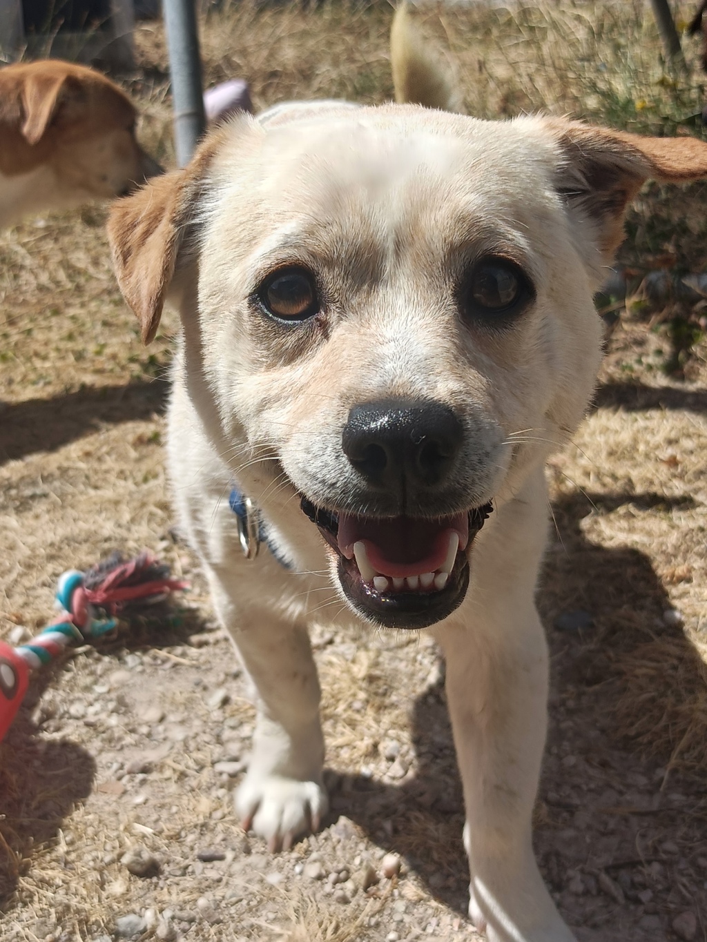 Sammy has previously lived as part of a large group of dogs, so he's very comfortable around other canine companions and would likely enjoy a home with a calm, friendly dog to help show him the ropes. Because of his past, he's still learning about the big wide world and can feel unsure out in public. New environments can be a little overwhelming for him, so he'll need a patient adopter who is happy to take things slowly and build his confidence step by step.