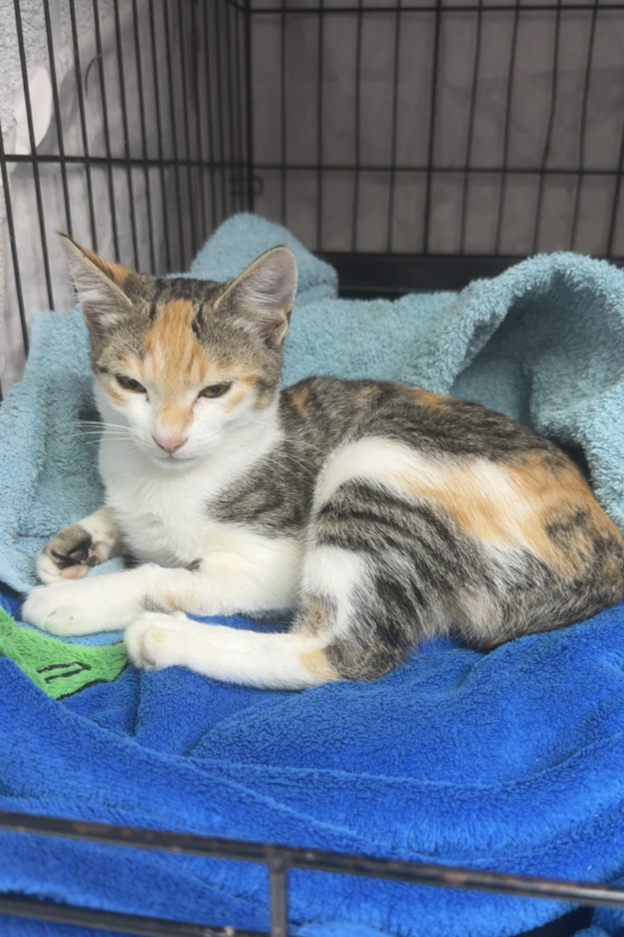 She is estimated to be around 4 months old, very friendly, affectionate, and does well with other cats.
