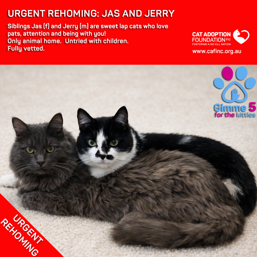 Donate to Jas and Jerry at Cat Adoption Foundation Incorporated via Shout