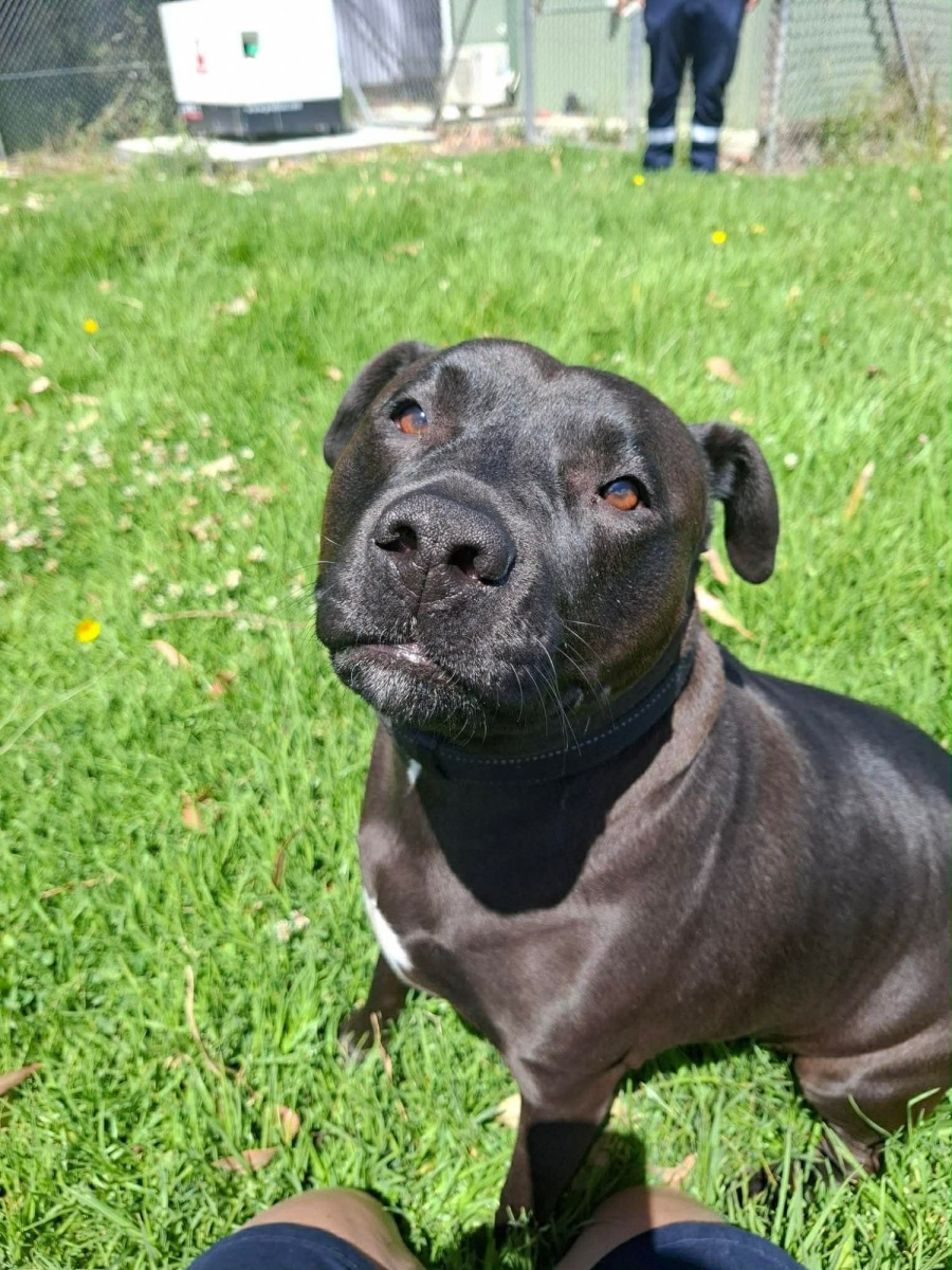 Meet Delites, lovingly known as Marty — a happy, affectionate American x English Staffy with a big heart and an even bigger love for the good life. 🐾💛