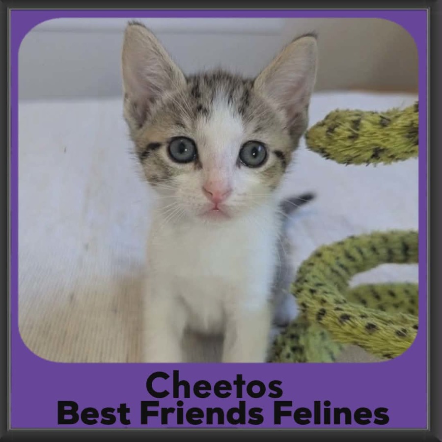 Cat scope: Cheetos was brought up in a busy cat household as part of a litter of six, so kitty social skills are second nature to him. He understands cat etiquette and shows lovely respect toward the older cats around him. He’s confident without being pushy and reads the room well, adjusting his energy appropriately. He would likely transition beautifully into a home with another friendly cat, especially one open to a playful but polite young companion.