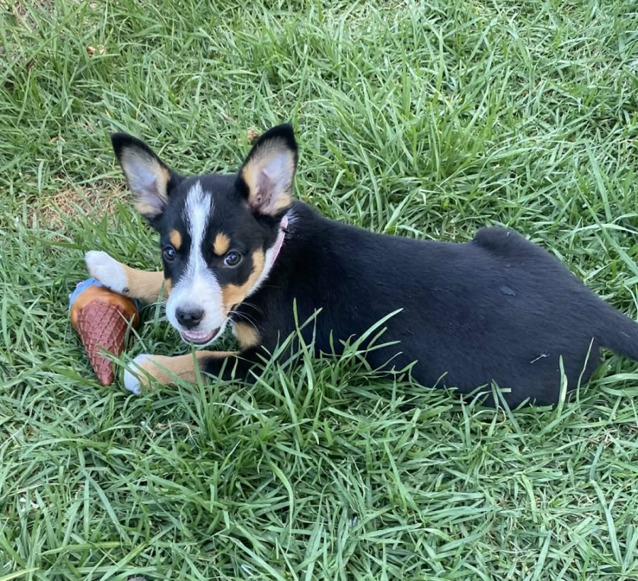 When she's finished exploring and is ready to take a rest, she loves either sprawling out on the floor of having a snuggle with you on the couch or cuddling up to other dogs.