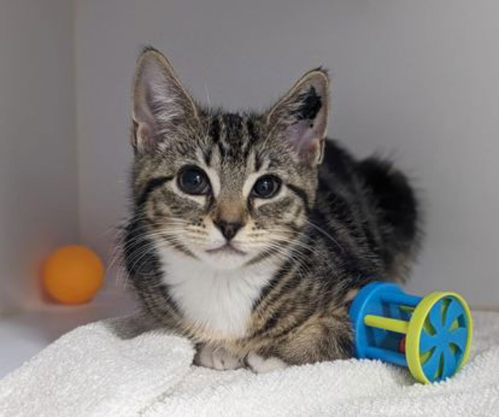 Chiffon is a shy but incredibly sweet kitten who blossoms with a little patience and love. At first, she may watch from a cozy corner, taking her time to feel safe, but once she trusts you, she'll curl up beside you, softly purring and soaking up every gentle pet. She loves quiet moments, warm laps, and curling into sunbeams for peaceful naps.