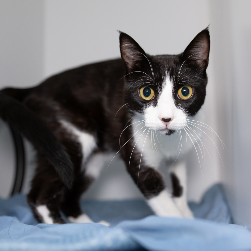 Ollie is a sweet, social guy who enjoys being around his people and soaking up attention. With his striking black-and-white coat and bright, curious eyes, he's sure to steal your heart in no time. He's looking for a forever family who will give him plenty of love, a cozy spot to nap, and lots of opportunities to be part of the action.