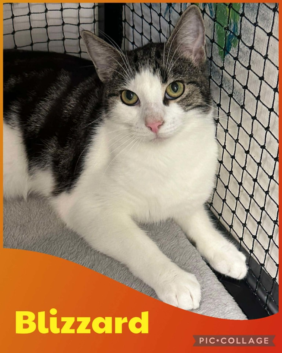 Blizzard is an affectionate cat with a heart full of love. He is a true softie, with a love for gentle pats and curling up for a cozy snuggle. If you're looking for a cat that purrs contentedly with every affectionate touch, Blizzard is your guy.