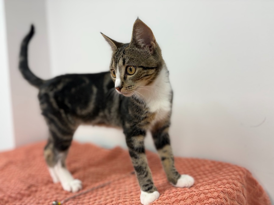 Discover the charm and affection of this delightful feline friend who's just six months old. With a perfect balance of playfulness and calmness, this young cat is a wonderful companion for both humans and fellow felines. He is purry and affectionate, showcasing a loving spirit in every interaction.