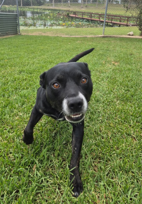 Boomer has a gentle and playful nature. He loves children (lots of contact with previous owners grandchildren) and other dogs (he lived with a chihuahua). He gets a bit excited around new people. his foster carer says he is well-behaved if a bit boisterous. He walks well on a lead, is obedient and loves people but is untested with chooks, cats and pocket pets. Boomer will need good fences.