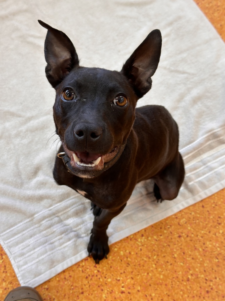 She's smart, eager to please, and very food-motivated, which will help with training. Lucy knows "sit" and is working on "down." She enjoys enrichment like snuffle mats and is still learning how toys work - soft squeaky ones are her favorite so far!