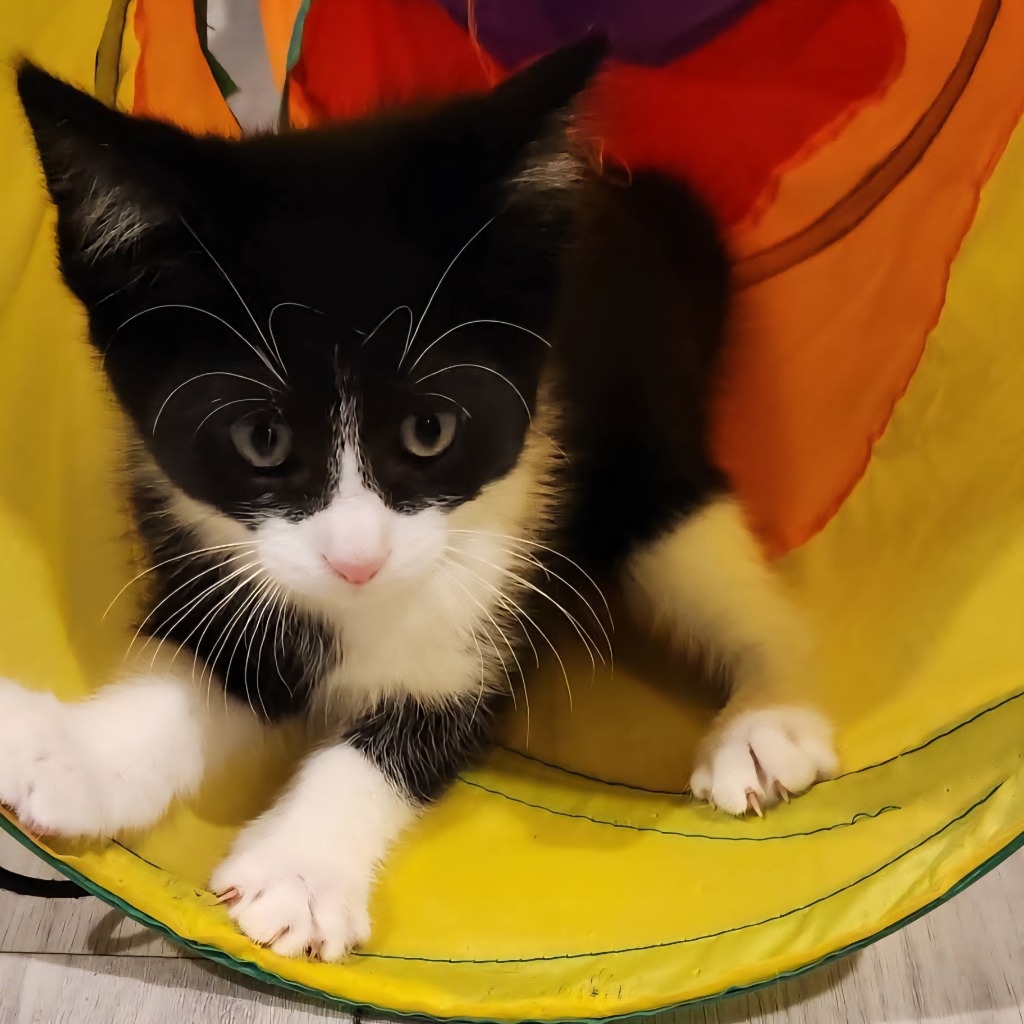 Alvin is a cheeky little ring leader who loves to play and explore. Named after the adventurous chipmunk he loves the sound of his own voice, and will "talk" to you when greated. He purrs immediately upon seeing his foster family and absolutely loves being handled. He gets along wonderfully with adult cats and has been exposed to large dog breeds, interacting happily with them. He would be the perfect fit for any busy household looking for a friendly companion to just slot in and get along with everyone!