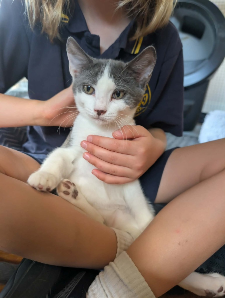 This sweet girl absolutely adores human company. Cuddles are her love language, and she’s happiest when she’s close by, soaking up attention or curling up for a nap with her favourite people. Monroe has that special ability to make you feel chosen, whether she’s climbing into your lap or following you from room to room just to be near you.