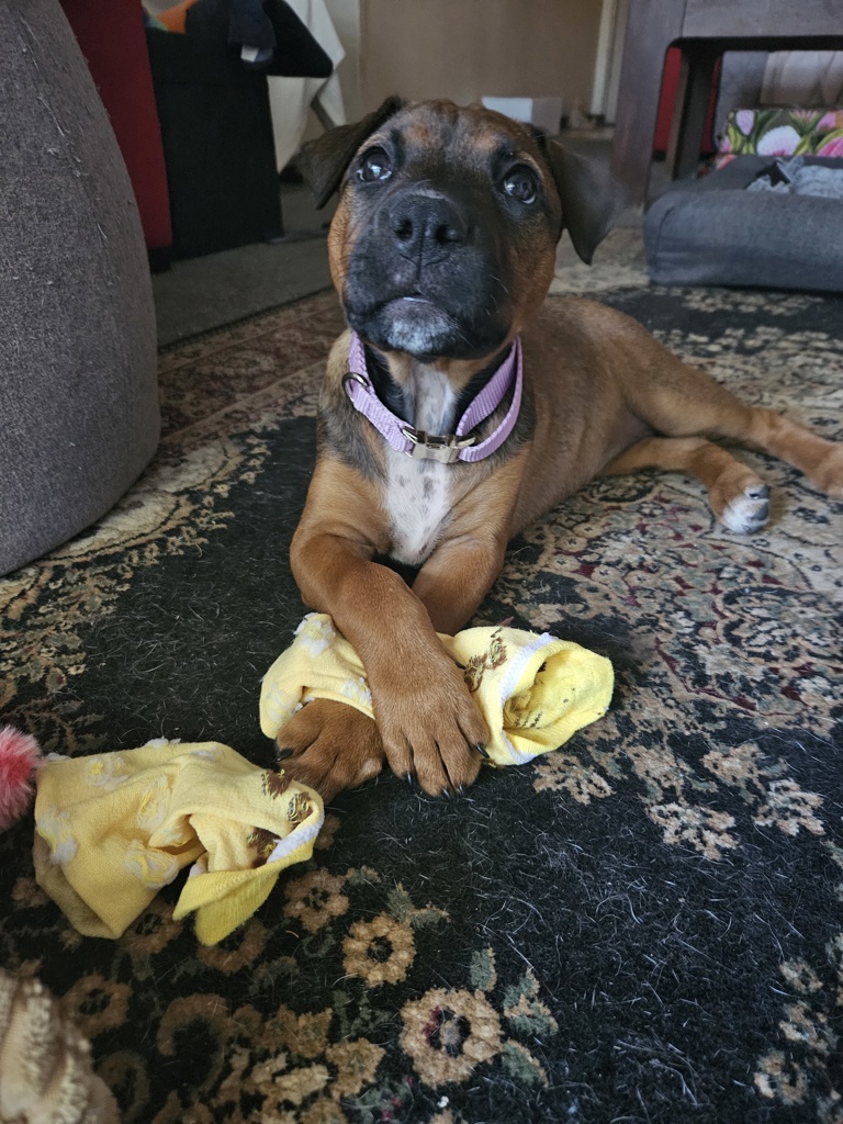 I'm a 9-week-old large mixed-breed puppy, which means I may be pint-sized right now... but I'm growing into a big, beautiful girl with an even bigger personality. Think "future adventure buddy" with a splash of sass.