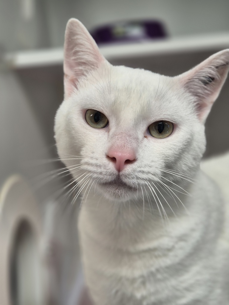 Meet Lucas, a gorgeous all-white shorthaired boy who's still very much a teenager at just 9 months old 🤍