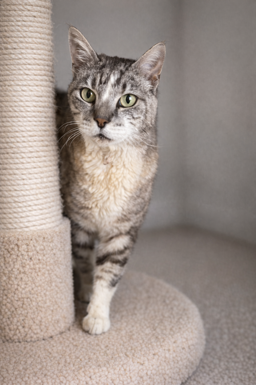 Melanie is a 9âyearâold domestic short hair with a beautiful tabbyâandâwhite coat and an air of quiet sophistication. She's reached the stage in life where she knows exactly what she wants: comfort, calm, and a home that appreciates her gentle, queenâlike presence.