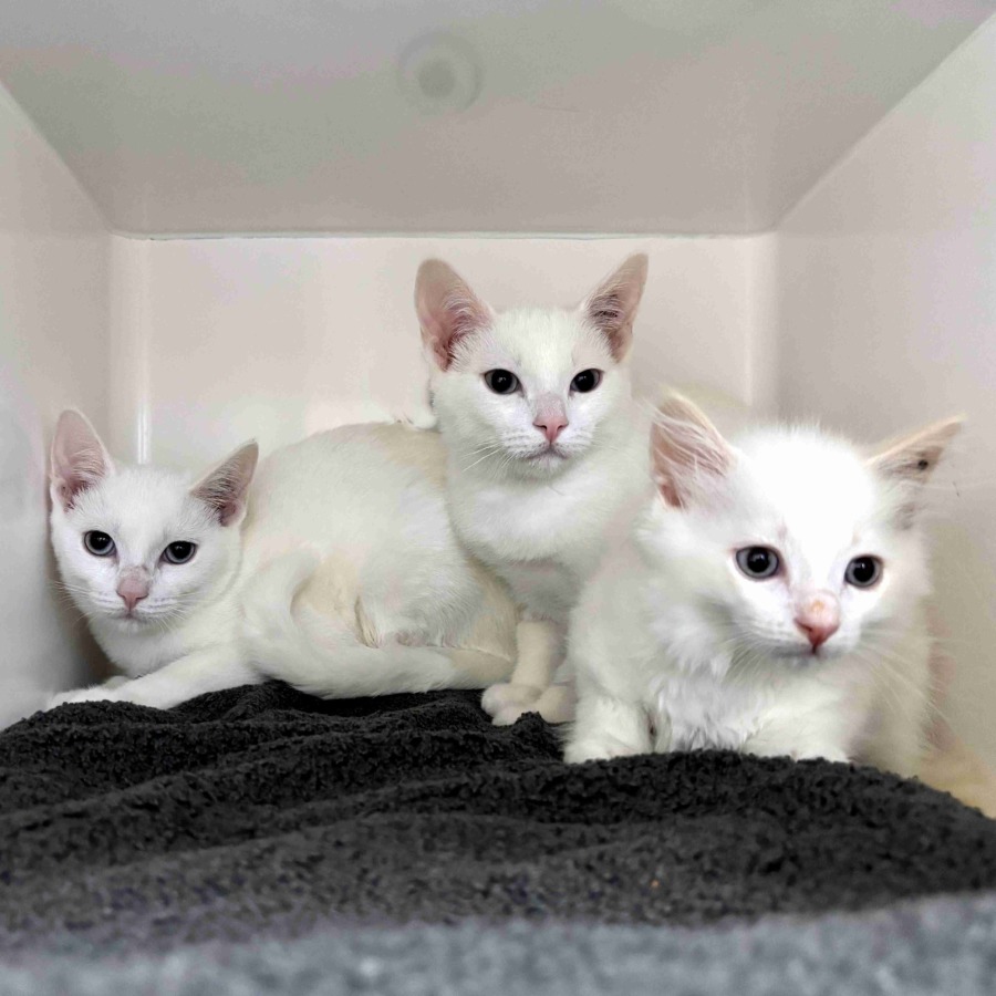 Jana is a gorgeous white kitten with stunning blue eyes and a soft snowy coat, she is truly picture-perfect.