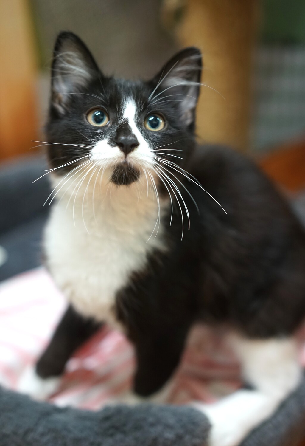 Meet Sharla, a tiny girl with a big heart and an even bigger curiosity about the world. She's the kind of kitten who trots over to greet you the moment you walk into the room, tail high and eyes bright, ready to turn anything into a game or a cuddle session.