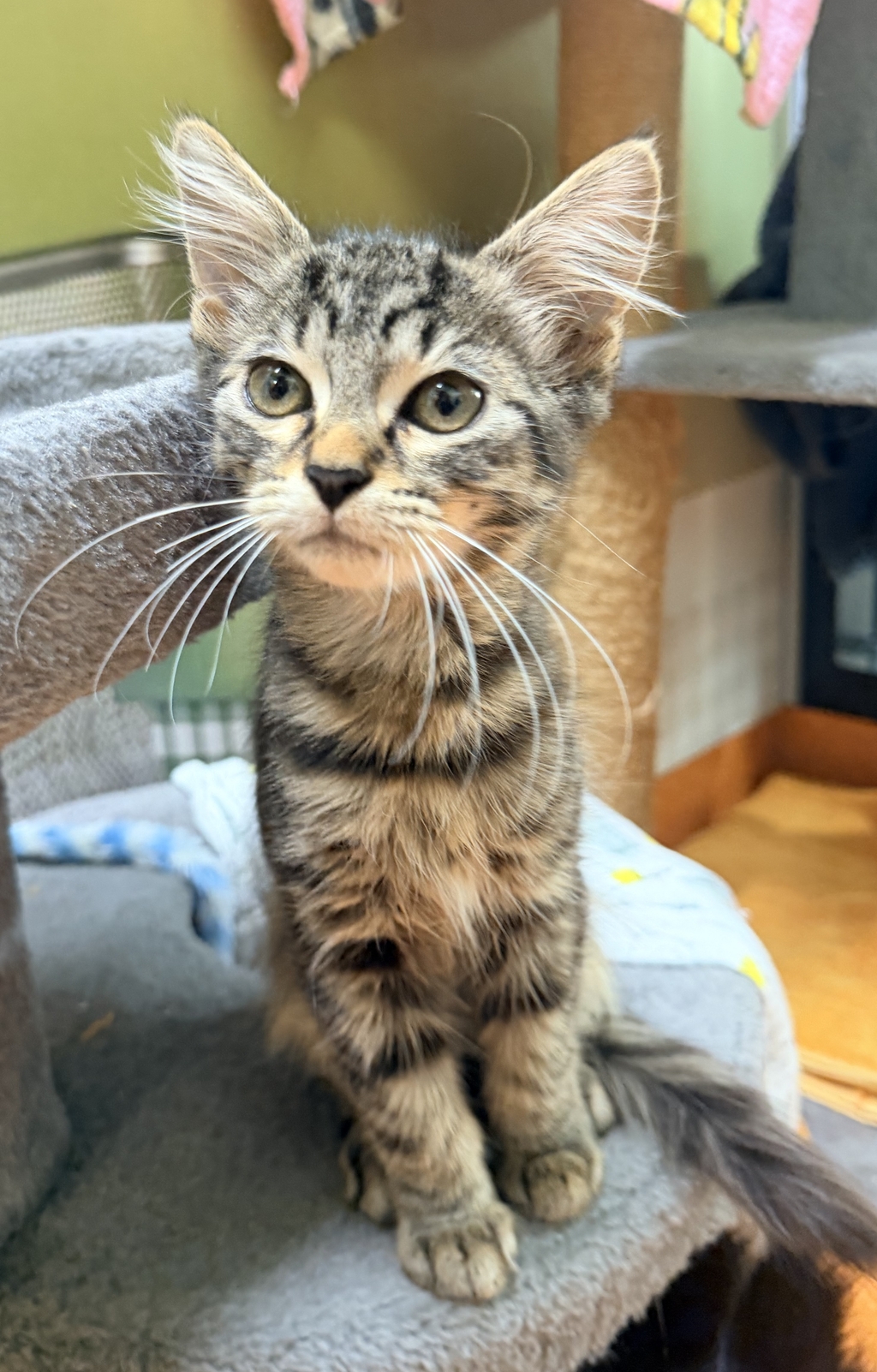 Tundra may be shy at first, so adopters should let him initiate contact and avoid chasing or forced handling. Interactive play with wand toys will help build his confidence and create positive associations.