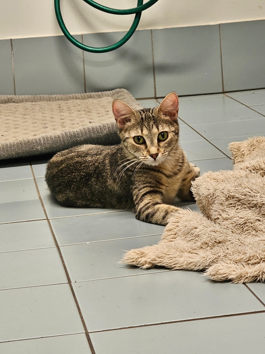 Prepare to meet the charming and vivacious Emmy, a delightful feline with a playful and sassy demeanor that will capture your heart. Over the past 4 months, we've had the pleasure of seeing Emmy's unique personality bloom, and now she's on the lookout for a loving family home where she can truly shine.
