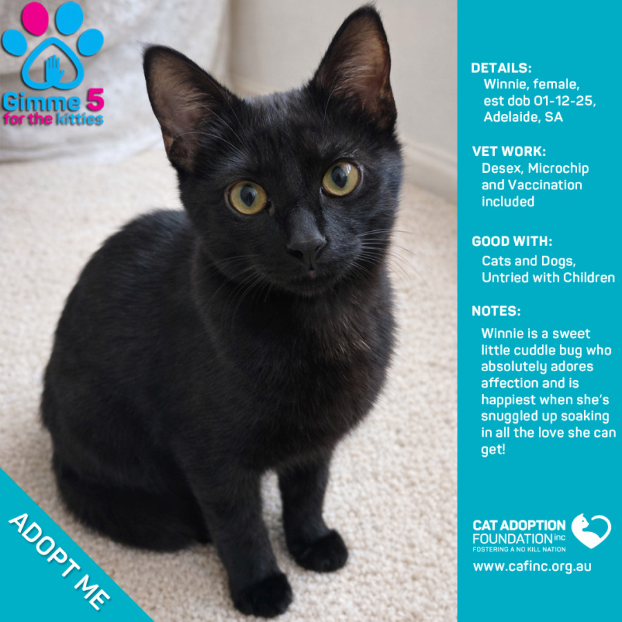 Donate to Winnie at Cat Adoption Foundation Incorporated via Shout