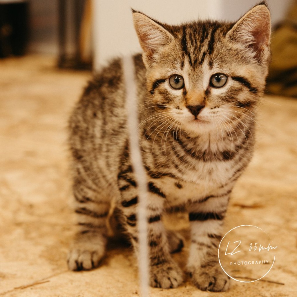 Say Hi to Waffle, also known as the "Playful Cutie"! Waffle loves to play and climb and would be happiest with one of his siblings or another cat. Waffle is fostered with cats and dogs.