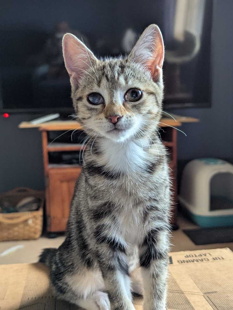 This curious kitten is also harness-trained and adores going for walks, making her an adventurous companion for those who desire a more active lifestyle with their feline. Her adaptable nature allows her to peacefully coexist with other cats, so she will be a welcome addition to homes with existing feline friends.