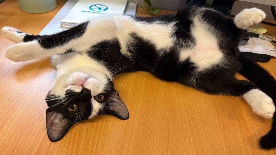 Introducing Clinkers, the adorable 6-month-old male kitten who's brimming with affection and playfulness! His loving nature shines through in every purr and head nuzzle, making him a delightful addition to any home. Clinkers is a quintessential lap cat who adores rolling around for a good belly rub, ready to shower you with endless affection.