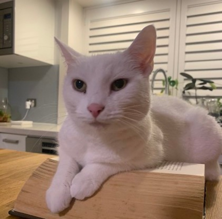 Meet Snowflake, a captivating and lovely white feline at 12 years young. Despite her years, she has the lively spirit of a much younger cat. Snowflake is looking for a new human companion due to her previous owner's relocation overseas.