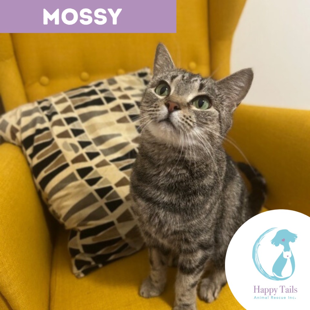 Mossy is a small tabby lady whose favourite thing to do is sit next to you on the couch and purr! She is a very affectionate girl who takes a small while to gain confidence, but give her a few days and she is your little shadow.
