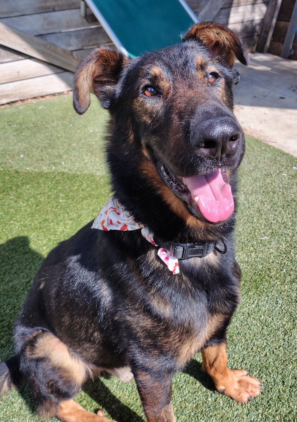 Say a gentle hello to Clyde, the sweet and sensitive Dobermann x German Shepherd who is still learning about the world. This lovely boy is on the lookout for a large breed experienced home with a big, secure yard to run around in.