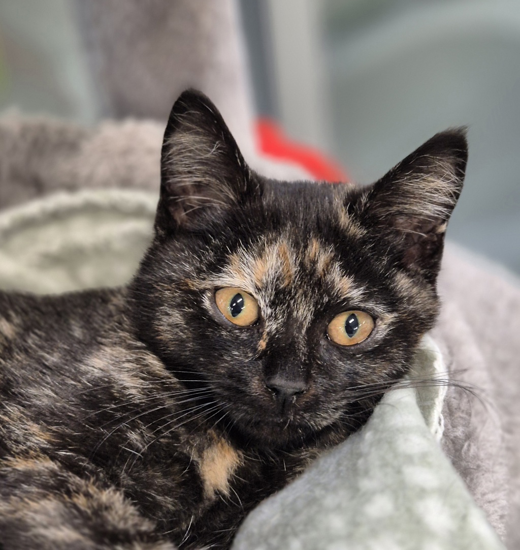 This gorgeous little tortoiseshell girl knows exactly what she wants in life... and she isn't shy about making it known. Tilly is a confident, self-assured kitten who uses her signature torti-tude in the most charming way. Whether she's requesting playtime, snacks, or prime cuddle real estate, she'll make her wishes clear - and you'll happily agree every time.