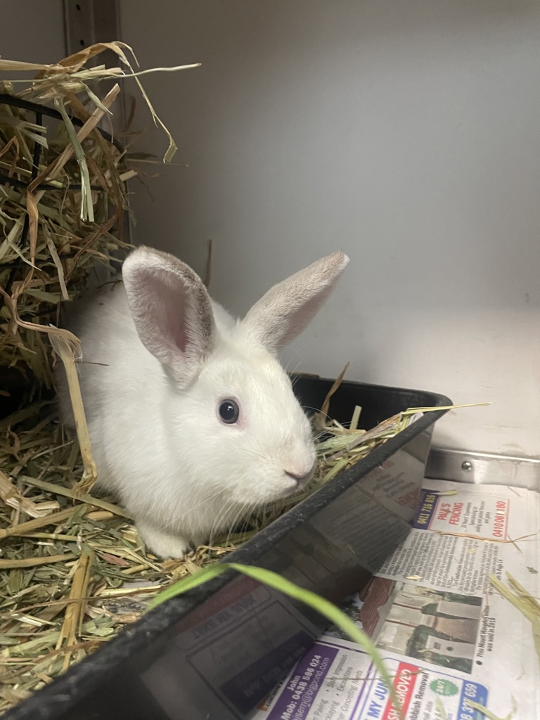 Marshmellow is a young, confident bunny with a heart full of love and a curious spirit! This little one adores gentle head rubs, hopping around for playtime or Cuddles up on the couch and getting to know their human friends. loves fresh veggies and enjoys exploring safe indoor spaces. Whether it's flopping out for a nap or bouncing up for a treat, Mashmellow is always ready to charm you! She may also enjoy the company of another friendly bunny, pending a meet and greet. Enrichment is key to keeping Marshmellow happy and engaged-she'll delight in tunnels to dart through, hay-stuffed toys, cardboard castles, and foraging games to tickle her curious mind.