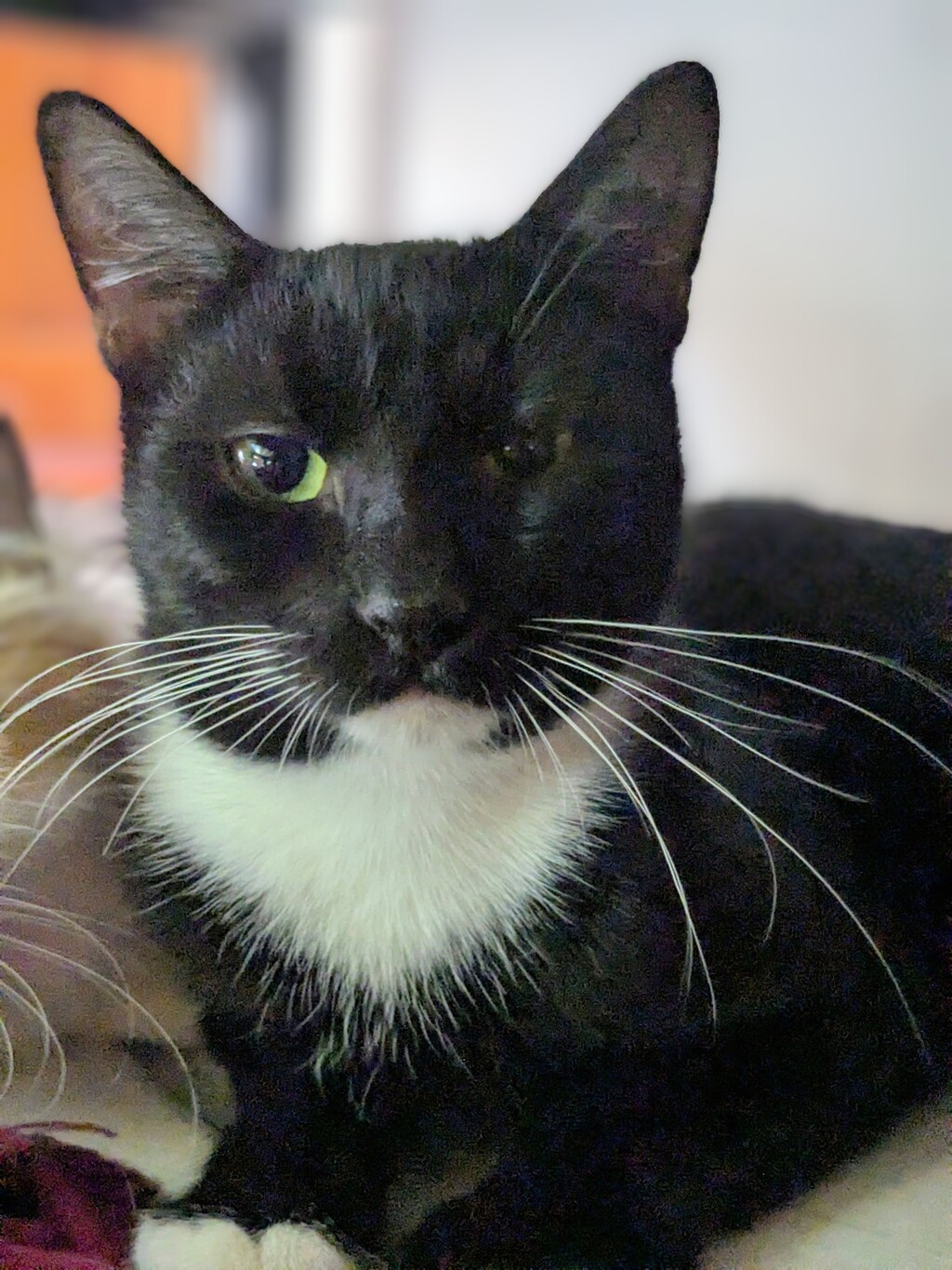 Ollie started his journey as a street cat, so the world of couches, cozy beds, and kind humans has been a big adjustment for him. Because of his past, he's still a little undersocialised and is very timid, especially in new situations. He has taken a long time to come out of his shell -and while he's made beautiful progress, he is still very much a work in progress.