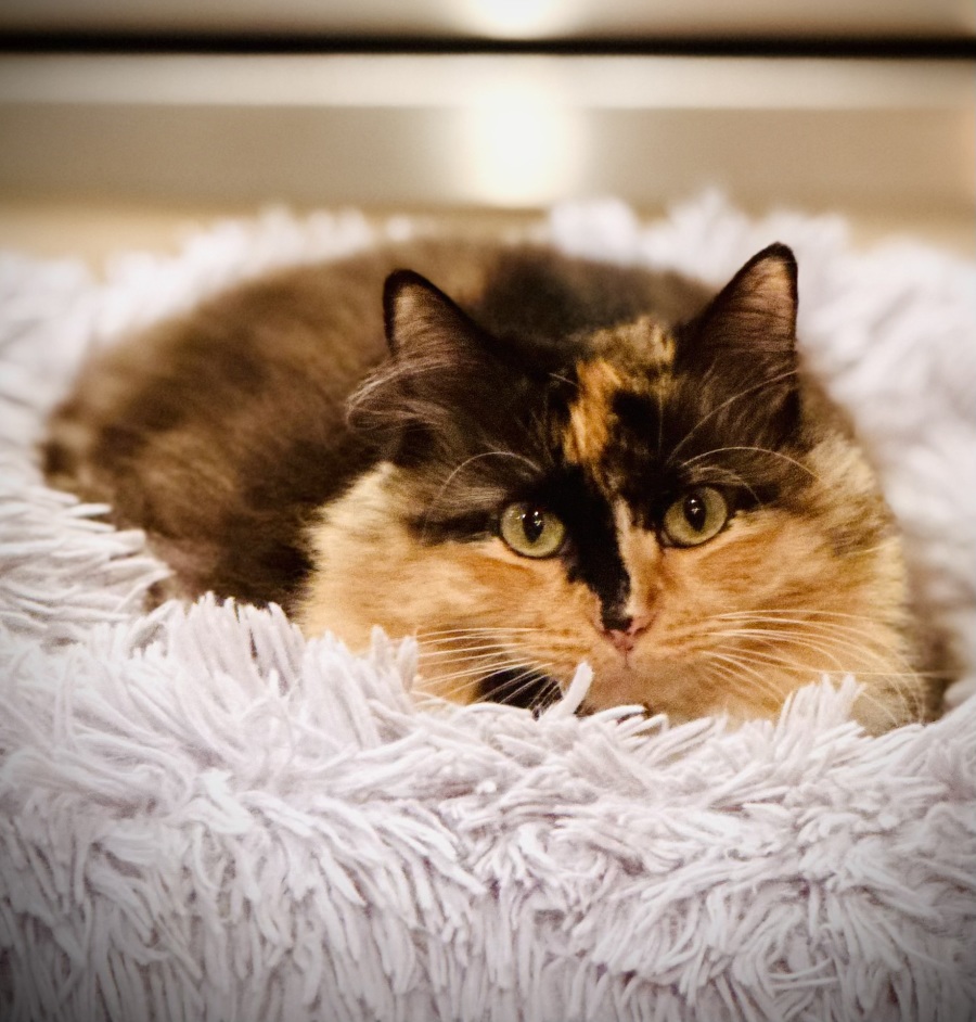 Greta is a beautiful 2-year-old medium-haired calico girl who has been in our care for 16 months. Life in a busy shelter was overwhelming for this soft-natured sweetheart, and she found it difficult to show her true self.