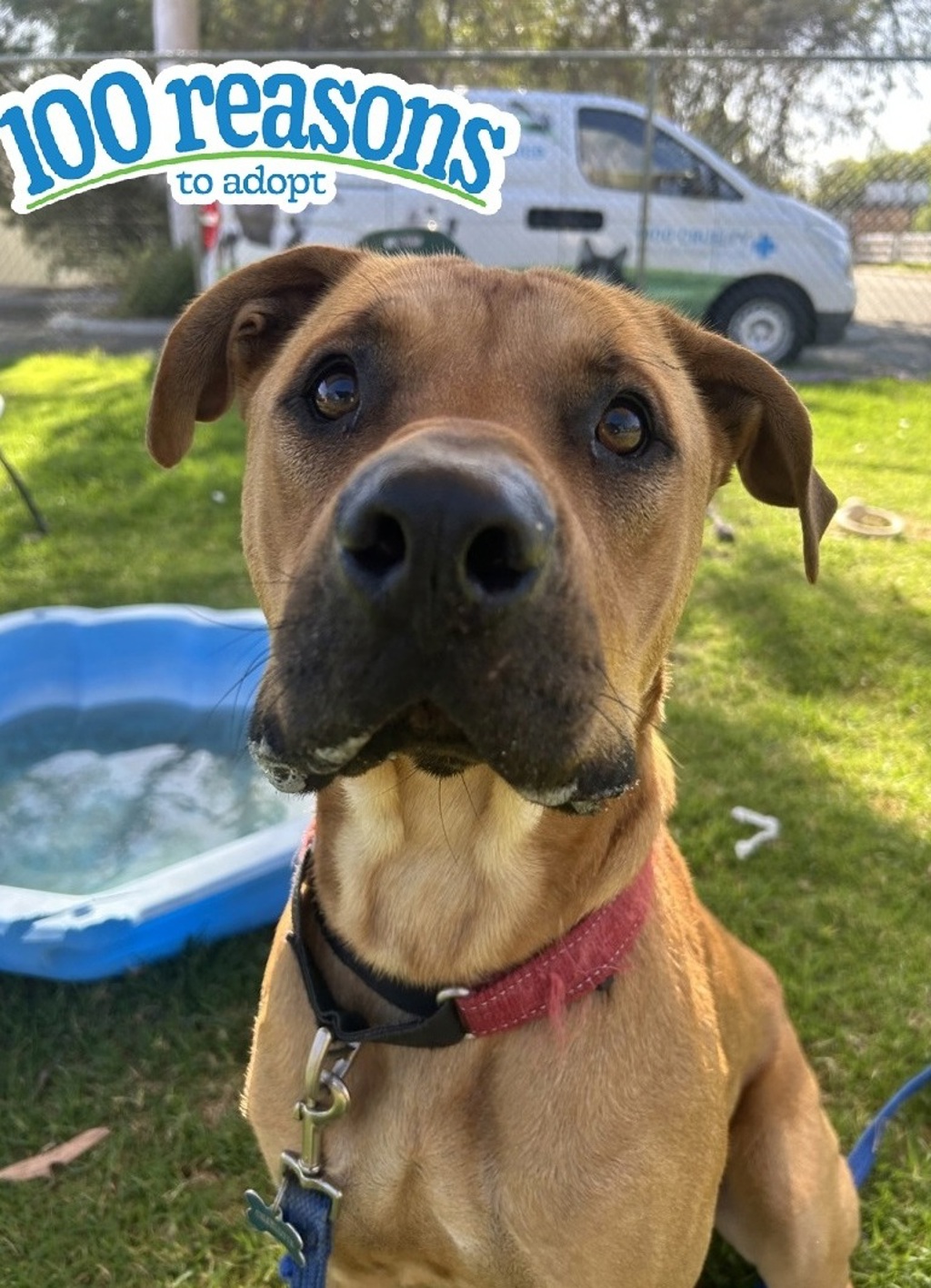 I'm 2 years old, which means I've grown into my big handsome body, but I'm still a bit of a softie at heart. I can be a little timid when I first meet new people or find myself in new places. I like to scope things out, make sure the vibes are good, and then-boom-you've got yourself a loyal best mate who follows you around like your oversized shadow.