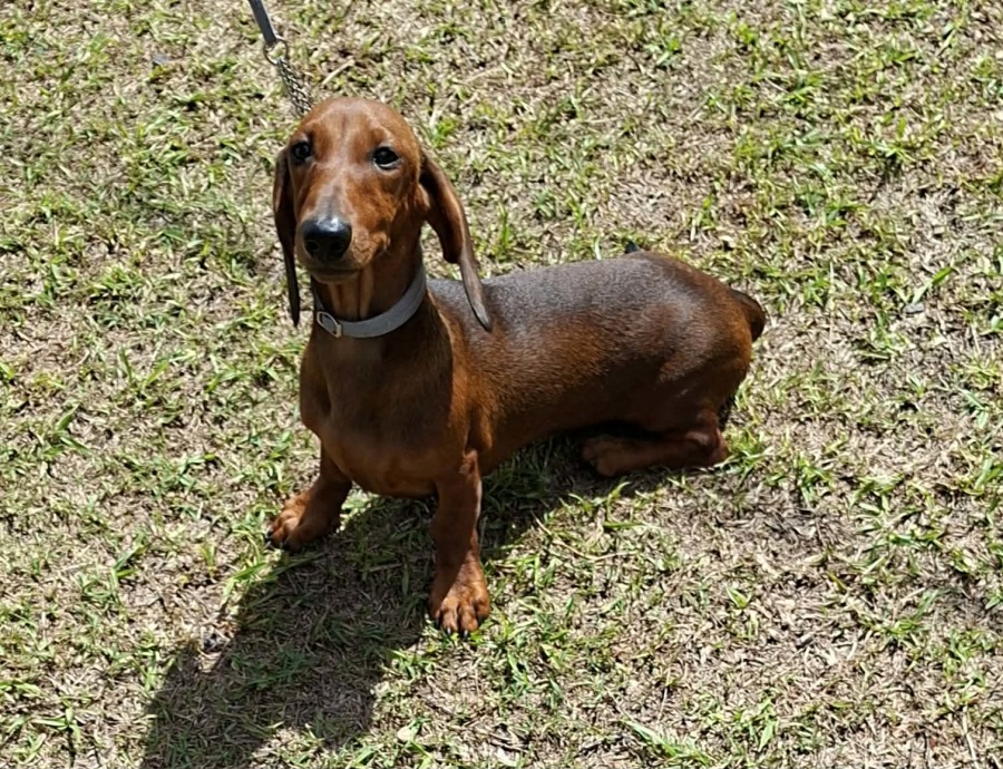 He loves going in the car, sleeps in own bed inside, and will need to have the companionship of a like minded dachshund to play and rest with.
