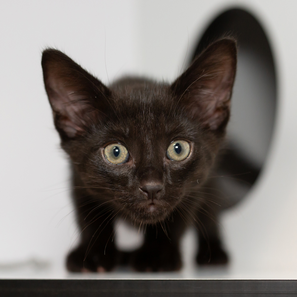 Meet Port, a tiny little black kitten with the sweetest soul and the biggest future ahead of him. Though he may be small right now, this precious baby has so much growing to do-and he's ready to do it in a loving forever home. Port is a gentle, affectionate little boy who enjoys cuddles just as much as he enjoys exploring the world around him.