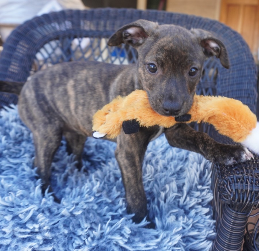 Once she feels safe, her playful side comes out in bursts of zoomies and wiggly tail happiness. She enjoys a cuddle just as much as a game, happily leaning into you as if she’s known you forever.