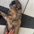 Despite everything she has been through, Muffin remains incredibly gentle, affectionate, and full of quiet love. She can be a little shy when meeting new people, but once she feels safe, her sweet personality shines. She loves staying close to her humans, quietly keeping you company and enjoying calm moments together.